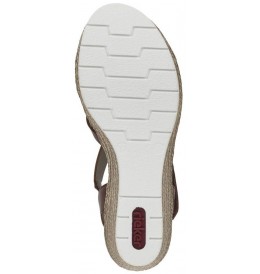 Step out in style with the Rieker 61937-24 women’s wedge sandals, designed to perfectly blend comfort and elegance for all-day wear. These women's sandals feature a lightweight construction and cushioned insole, making every step feel effortless, whether for a weekend outing or a busy day at work. The well-crafted wedge adds just the right touch of height, enhancing confidence while ensuring stability with every stride.