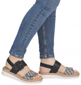 Plongez dans le confort et le style raffiné des sandales à talon compensé D0Q62-03 signées Rieker - Remonte, parfaites pour toutes vos aventures estivales. Grâce à leur semelle compensée légère et leur design ergonomique, ces sandales pour femmes offrent un maintien optimal du pied tout en alliant élégance et praticité.